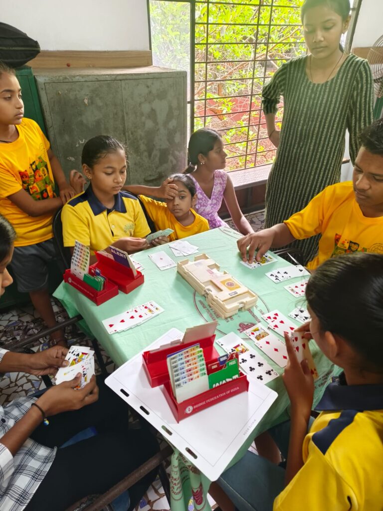 Bridge Federation of India is pleased to announce that, in collaboration with Parksons Cartamundi private limited, it successfully conducted a Bridge Education Workshop at Dahanu city. The workshop was hosted at the Tamarind Tree School, a unique institution nestled under a chikoo orchard in the tribal hamlet of Sogve village. The school serves around 125 first-generation learners from the Warli tribal community, from pre-primary to Class 8.