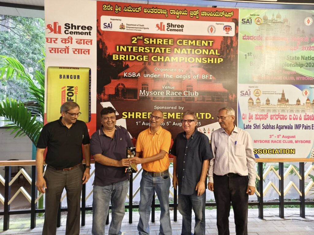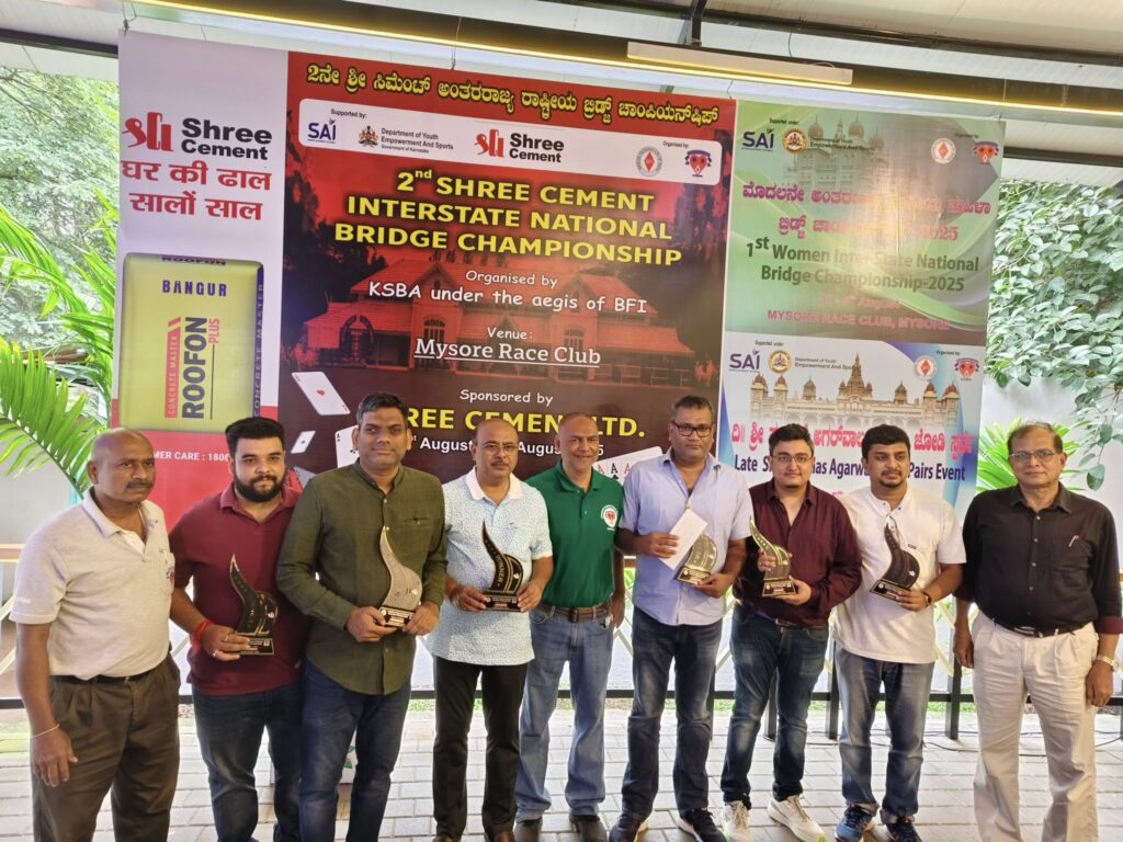 The Shree Cement Interstate National Bridge Championships witnessed a record participation of 35 teams from 21 states and affiliated units at Mysore Race Club, Mysore from 1-5th August, 2025